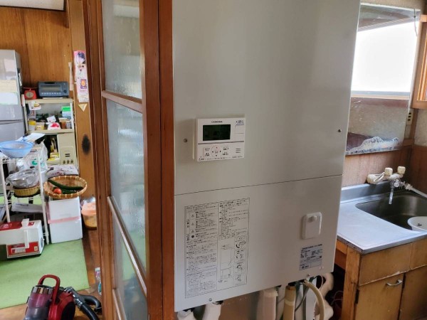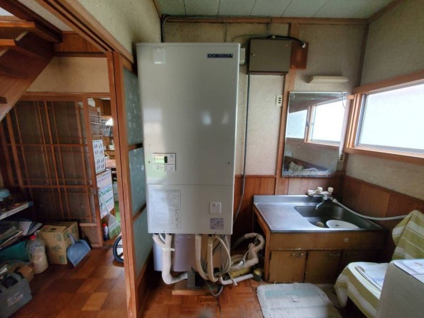 トップページ > 工事事例一覧 > 神栖市居切 コロナ自然冷媒CO2家庭用ヒートポンプ給湯機 貯湯ユニットCTU-E37AY4K、ヒートポンプユニットCHP-Y453K エコキュート交換工事