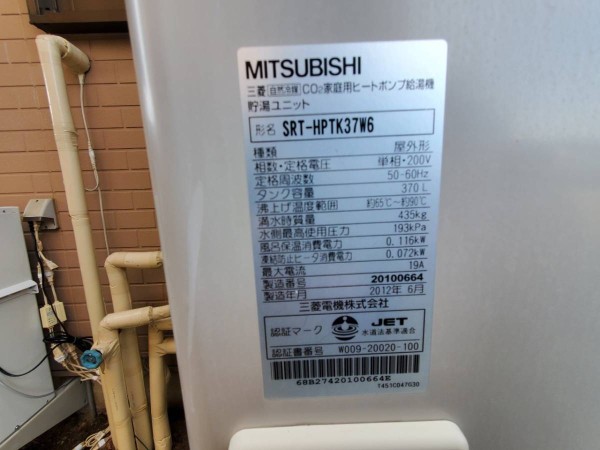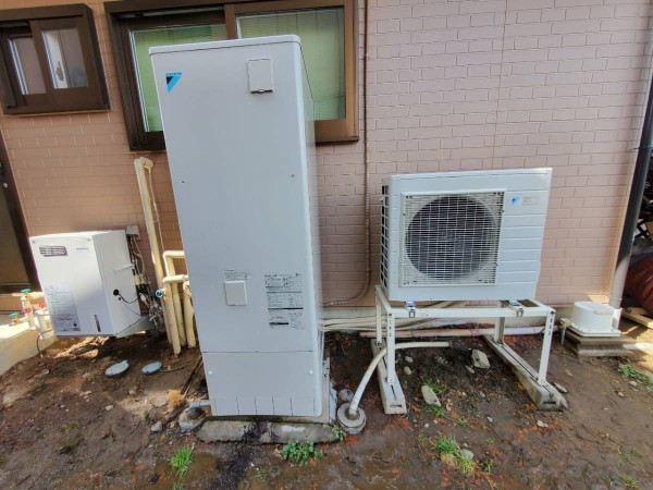 神栖市居切 三菱電機エコキュート→ダイキン自然冷媒(CO2)・家庭用ヒートポンプ給湯機 貯湯ユニット、ヒートポンプユニットRQW45WHVエコキュート交換工事
