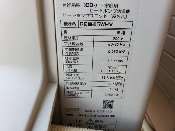 神栖市居切 ダイキン自然冷媒(CO2)・家庭用ヒートポンプ給湯機 貯湯ユニット、ヒートポンプユニットRQW45WHVエコキュート交換工事|茨城県のエコキュート専門交換工事店|茨城エコキュート交換ショップ補助金対応可能