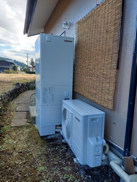 トップページ > 工事事例一覧 > かすみがうら市加茂 コロナ自然冷媒CO2家庭用ヒートポンプ給湯機貯湯ユニットCTU-37AY5K、ヒートポンプユニットCHP-Y454K エコキュート交換工事