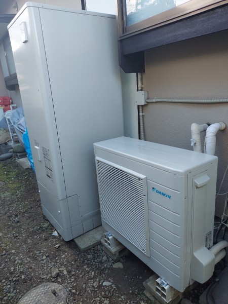 かすみがうら市深谷 コロナエコキュートCHP-456K→ダイキン自然冷媒CO2家庭用ヒートポンプ給湯機ヒートポンプユニットRGW45XHV エコキュート交換工事