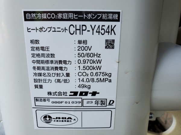 潮来市米島 コロナ自然冷媒CO2家庭用ヒートポンプ給湯機 ヒートポンプユニットCHP-Y454K エコキュート交換工事