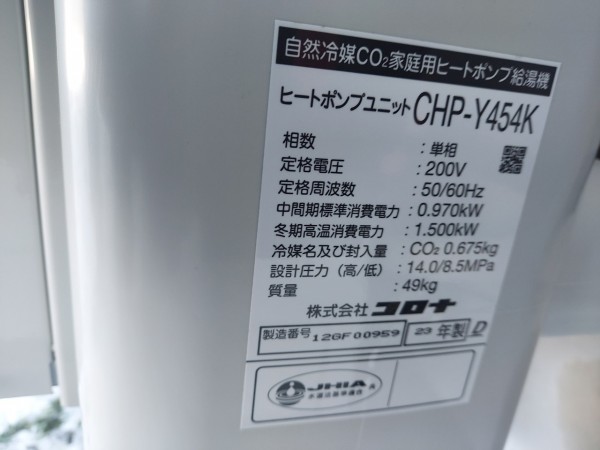 かすみがうら市岩坪 コロナ自然冷媒CO2家庭用ヒートポンプ給湯機ヒートポンプユニットCHP-Y454K エコキュート交換工事
