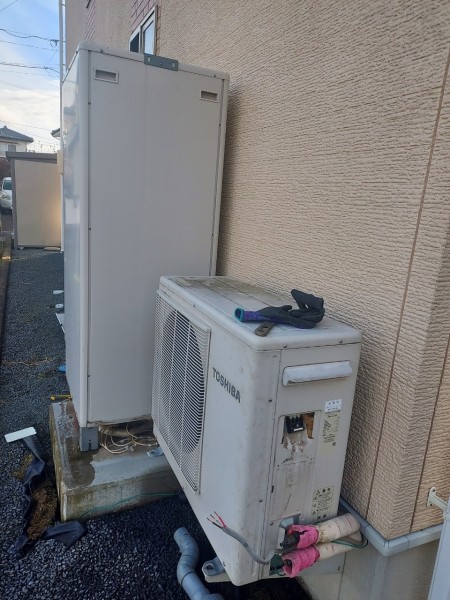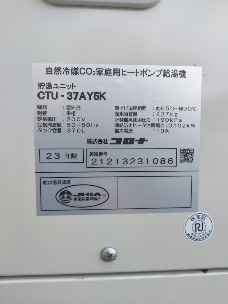 稲敷市高田 東芝エコキュート→コロナ自然冷媒CO2家庭用ヒートポンプ給湯機ヒートポンプユニットCHP-Y454K、貯湯ユニットCTU-37AY5K エコキュート交換工事