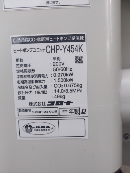 稲敷市高田 コロナ自然冷媒CO2家庭用ヒートポンプ給湯機ヒートポンプユニットCHP-Y454K、貯湯ユニットCTU-37AY5K エコキュート交換工事