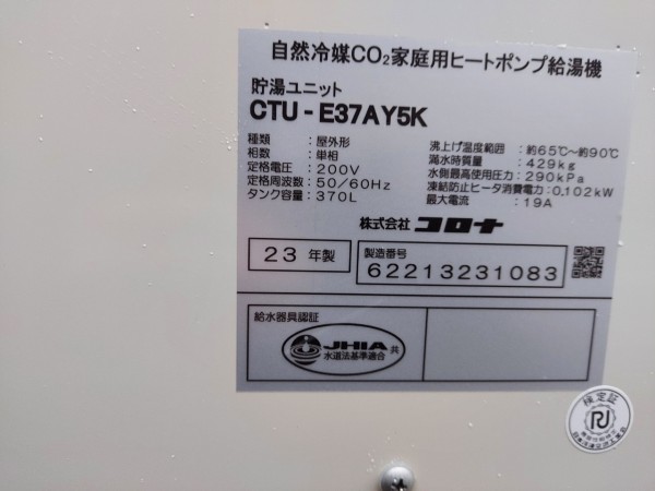 稲敷市六角 コロナ自然冷媒CO2家庭用ートポンプ給湯機貯湯ユニットCTU-E37AY5K エコキュート交換工事