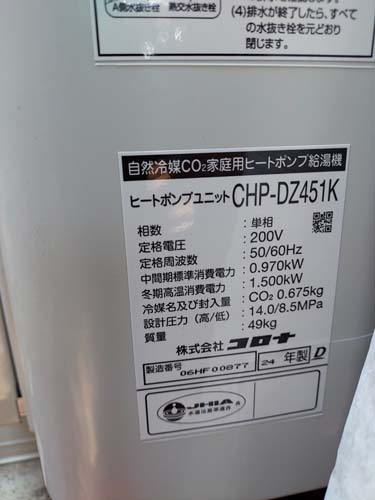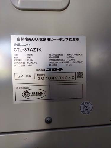 かすみがうら市岩坪 三菱電機エコキュート→コロナ自然冷媒CO2家庭用ヒートポンプ給湯機 貯湯ユニットCTU-37AZ1K、ヒートポンプユニットCHP-DZ451K エコキュート交換工事