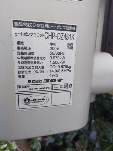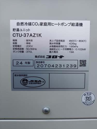 稲敷市押砂 コロナ自然冷媒CO2家庭用ヒートポンプ給湯機 貯湯ユニットCTU-37AZ1K、ヒートポンプユニットCHP-DZ451Kエコキュート交換工事