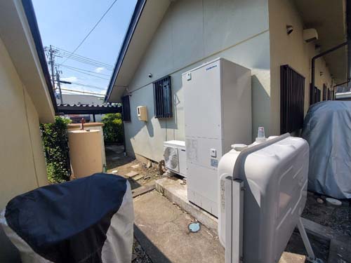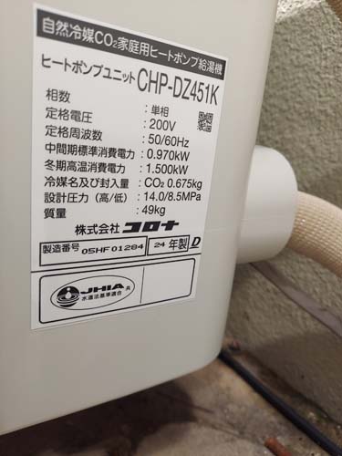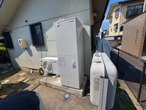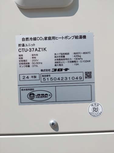 稲敷市高田 コロナ自然冷媒CO2家庭用ヒートポンプ給湯機 貯湯ユニットCTU-37AZ1K、ヒートポンプユニットCHP-DZ451K エコキュート交換工事
