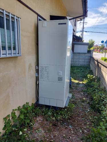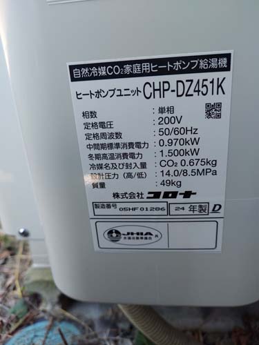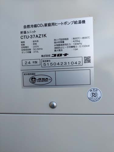 潮来市米島 コロナ自然冷媒CO2家庭用ヒートポンプ給湯機ヒートポンプユニットCTU-37AZ1K、ヒートポンプユニットCHP-DZ451K エコキュート交換工事