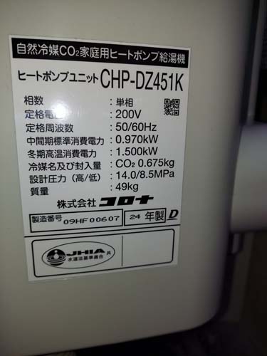 鹿嶋市和 コロナ自然冷媒CO2家庭用ヒートポンプ給湯機 ヒートポンプユニットCHP-DZ451K エコキュート交換工事