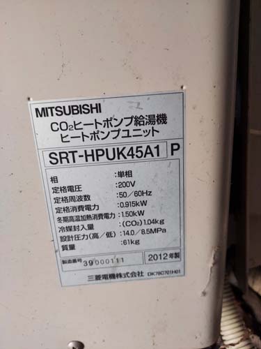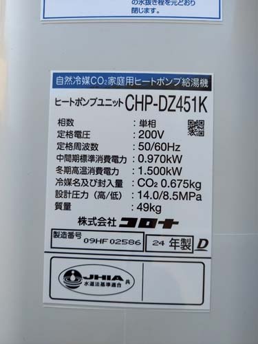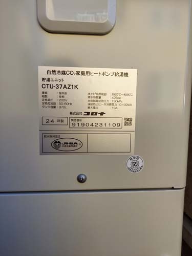 笠間市泉 三菱電機エコキュートSRT-HPUK45A1→コロナ自然冷媒CO2家庭用ヒートポンプ給湯機貯湯ユニットCTU-37AZ1K、ヒートポンプユニットCHP-DZ451K エコキュート交換工事