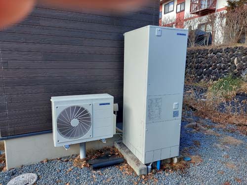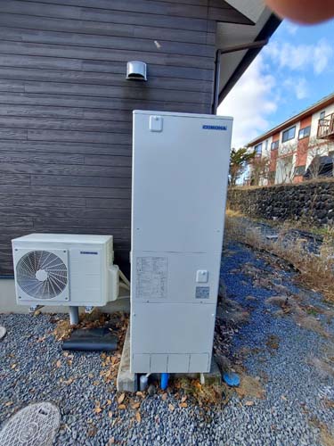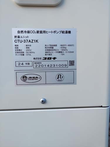 牛久市福田町 コロナ自然冷媒CO2家庭用ヒートポンプ給湯機貯湯ユニットCTU-37AZ1K、ヒートポンプユニットCHP-DZ451K エコキュート交換工事