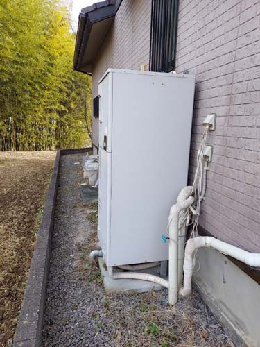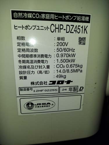 牛久市正直町 三菱電機エコキュート→コロナ自然冷媒CO2家庭用ヒートポンプ給湯機 ヒートポンプユニットCHP-DZ451K エコキュート交換工事