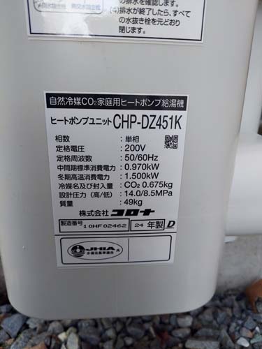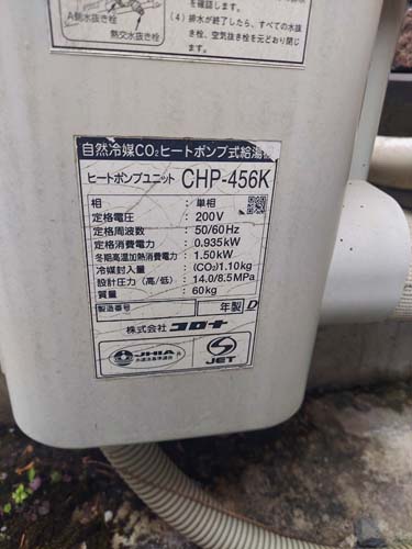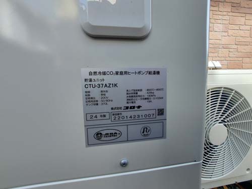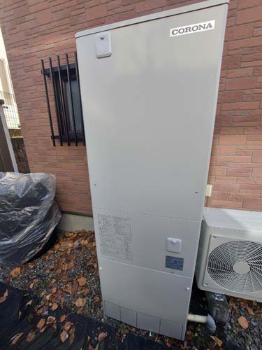 牛久市桂町 コロナ自然冷媒CO2家庭用ヒートポンプ給湯機 ヒートポンプユニットCHP-456K→コロナ自然冷媒CO2家庭用ヒートポンプ給湯機貯湯ユニットCTU-37AZ1K、ヒートポンプユニットCHP-DZ451K エコキュート交換工事