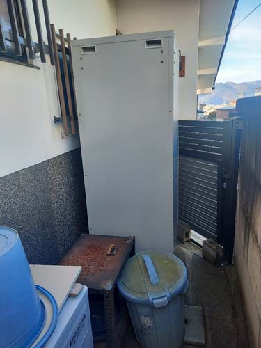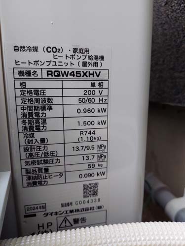 茨城町長岡 コロナ自然冷媒CO2家庭用ヒートポンプ給湯機 ヒートポンプユニットCHP-458K→ダイキン工業自然冷媒CO2家庭用ヒートポンプ給湯機貯湯ユニットTU37XFHV、ヒートポンプユニットRQW45XHV エコキュート交換工事