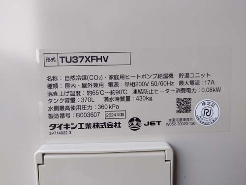 茨城町長岡 ダイキン工業自然冷媒CO2家庭用ヒートポンプ給湯機貯湯ユニットTU37XFHV、ヒートポンプユニットRQW45XHV エコキュート交換工事