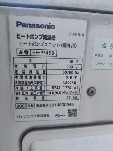 稲敷市高田 パナソニックヒートポンプ給湯機 ヒートポンプユニットHE-PF45B→コロナ自然冷媒CO2家庭用ヒートポンプ給湯機 ヒートポンプユニットCHP-DZ451K エコキュート交換工事