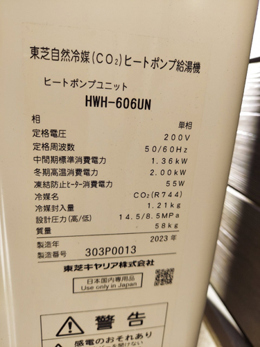稲敷市阿波 東芝自然冷媒CO2家庭用ヒートポンプ給湯機 ヒートポンプユニットHWH-606UN→コロナ自然冷媒CO2家庭用ヒートポンプ給湯機 ヒートポンプユニットCHP-DZ451K エコキュート交換工事