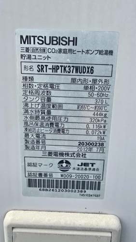 潮来市清水 三菱電機自然冷媒CO2家庭用ヒートポンプ給湯機 貯湯ユニットSRT-HPTK37WUDX6→コロナ自然冷媒CO2家庭用ヒートポンプ給湯機 ヒートポンプユニットCHP-DZ601K、貯湯ユニットCTU-46AZ1K エコキュート交換工事